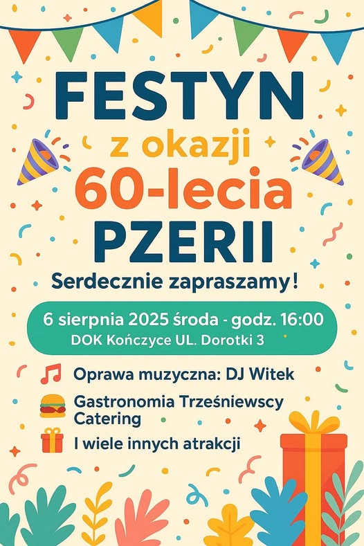 Serdecznie zapraszamy na festyn organizowany przez Polski Związek Emerytów, Rencistów i Inwalidów – Oddział Zabrze, który odbędzie się, 6 sierpnia na terenie DOK Kończyce.