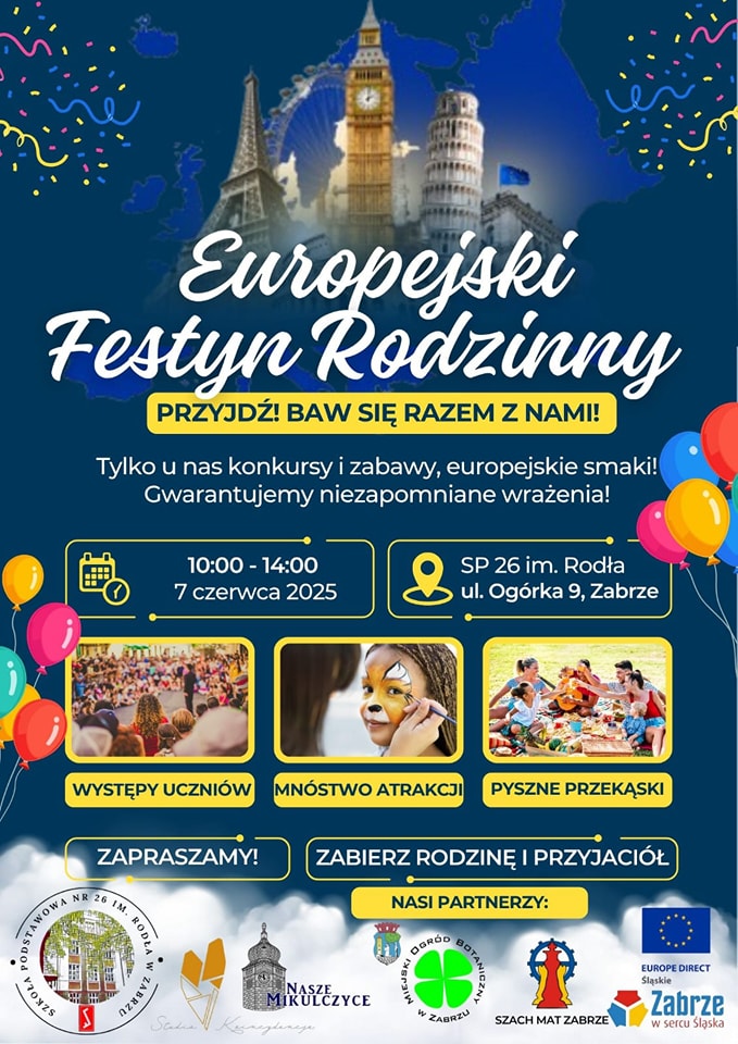 Szkoła Podstawowa nr 26 im. Rodła w Zabrzu zaprasza na szkolny festyn pełen europejskich atrakcji!