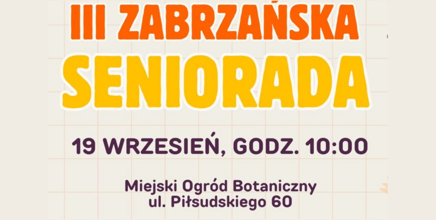 19 września o godz. 10.00 w Miejskim Ogrodzie Botanicznym odbędzie się III Zabrzańska Seniorada – wydarzenie pełne aktywności, zdrowia i dobrej zabawy, skierowane do seniorów oraz wszystkich mieszkańców.