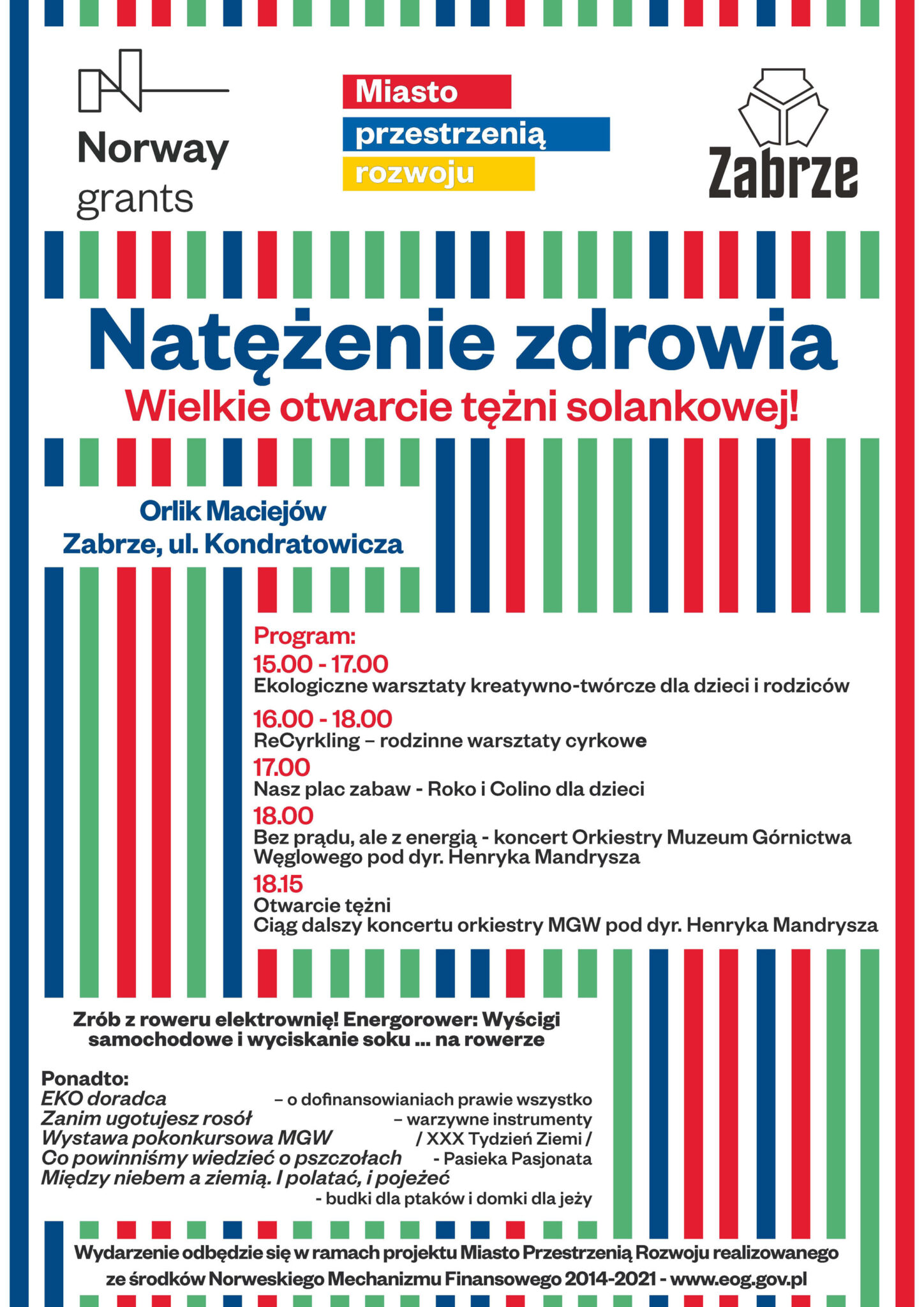 Zapraszamy na piknik pn. „Natężenie zdrowia”, podczas którego nastąpi oficjalne otwarcie tężni solankowej w Maciejowie. Będzie to druga tężnia solankowa wybudowana przy wsparciu Funduszy Norweskich.