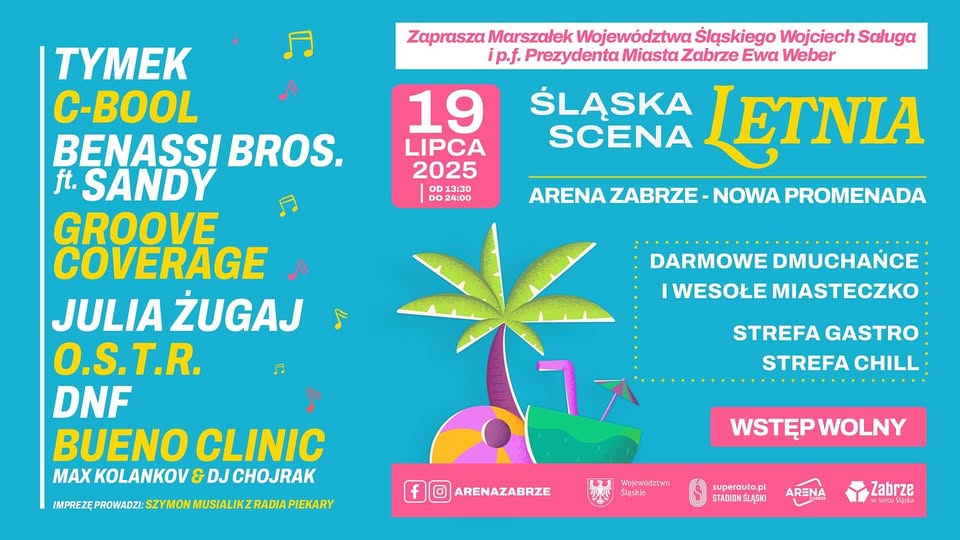 Letnia scena, polska muzyka taneczna, dobry rap, klubowe rytmy i… prezentacja Zespołu Górnika Zabrze ! Zapraszamy na wyjątkowe wydarzenie – ŚLĄSKĄ SCENĘ LETNIĄ na nowej promenadzie Areny Zabrze. Wstęp darmowy!